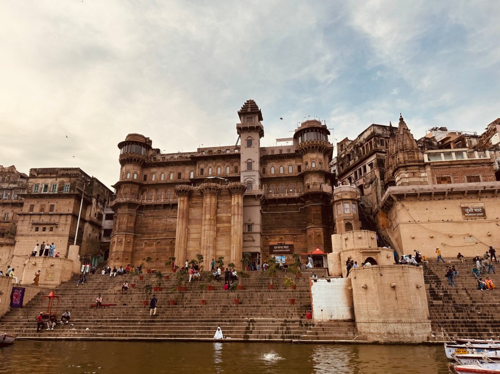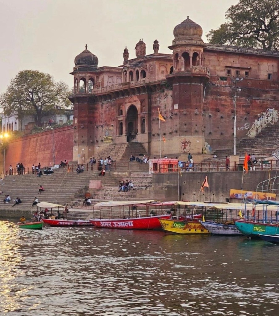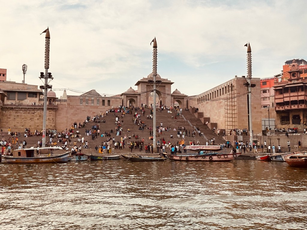These ghats stand as a testimony to the creation and destruction of the city multiple times. They witness Banaras, sometimes in awe when they see the ocean of humanity striding across the steps to submerge in spiritual fervour, sometimes in grief when they see bodies burning incessantly in their lap, sometimes in ecstasy when bhajans and devotional songs rise to praise the divine and sometimes in joy when they see people enjoying a boat ride at the sunset in the Ganges.